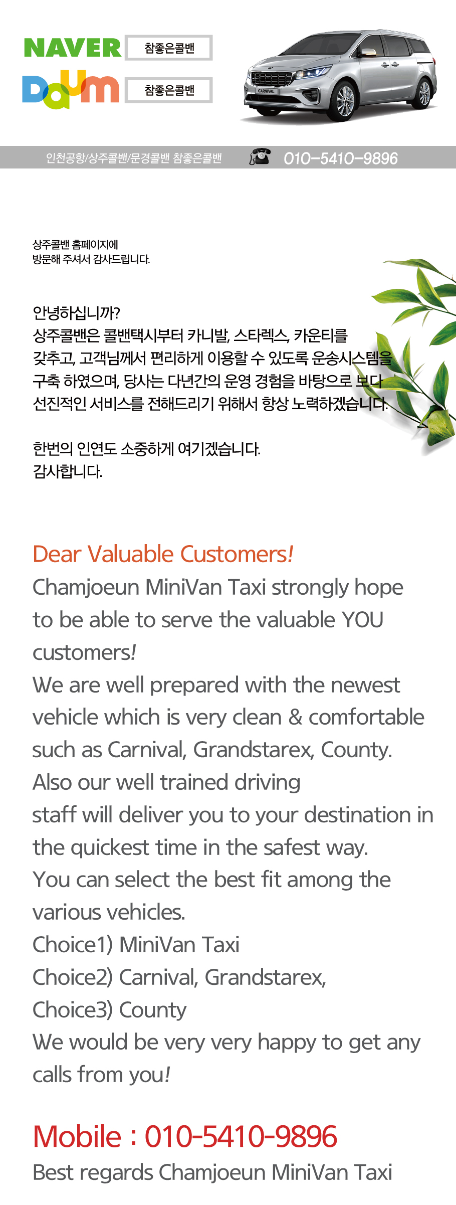 상주콜밴 인천공항콜밴